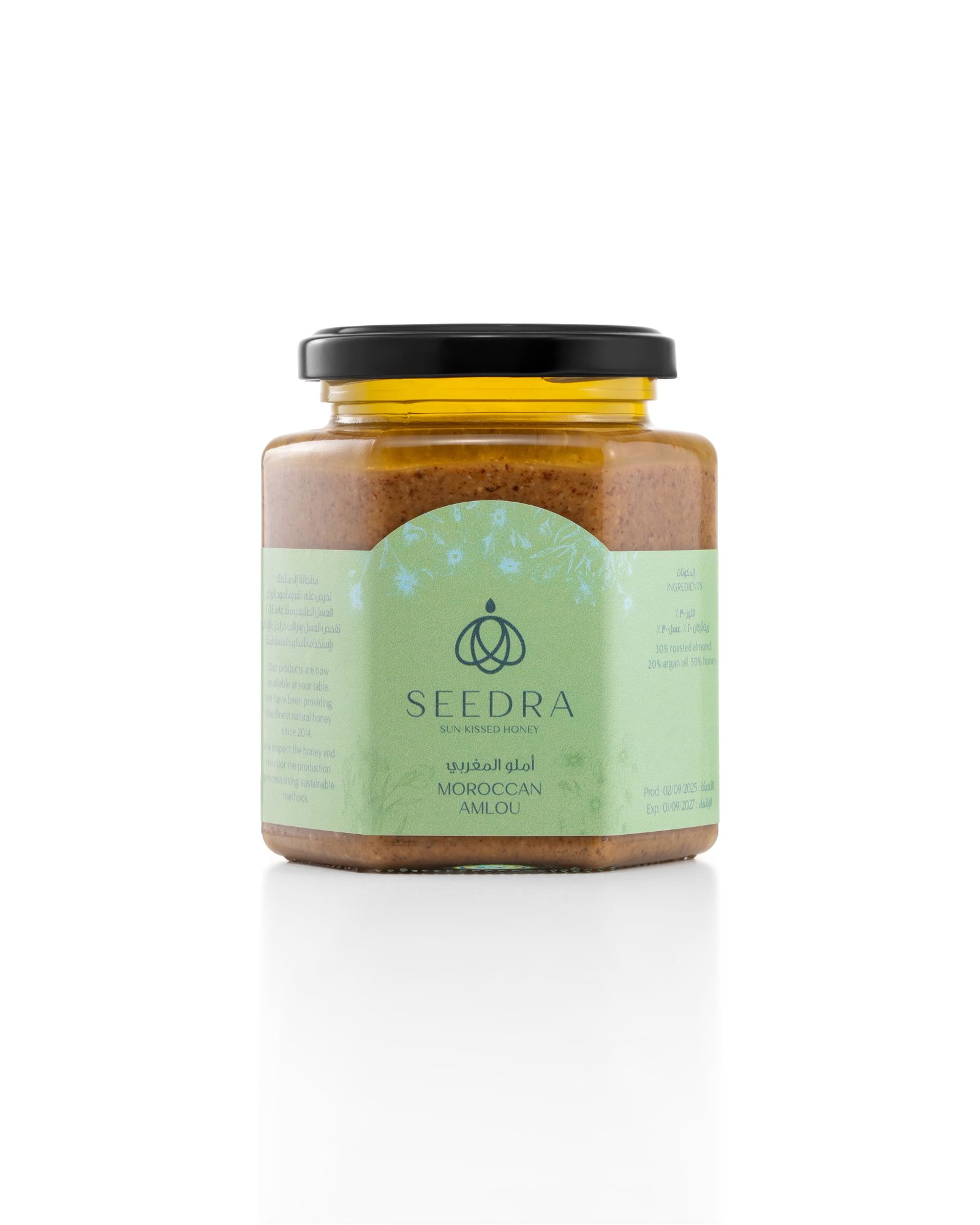 الأملو المغربي عبارة عن خليط من اللوز المطحون والعسل الطبيعي وزيت الارغان للاكل وهي تعتبر من الوصفات التقليديه في المطبخ المغربي حيث تعتبر وجبة اساسيه على المائده المغربيه مع الخبز وقد تستعمل مع التمر والحشوات والتوست واطباق الحلا ويخلط جيدا قبل الاستخدام ، منتج لذيذ جدا جدا ،سوف تستمتع بطعم مميز ولذيذ عند تناولك لهذا المنتج